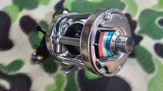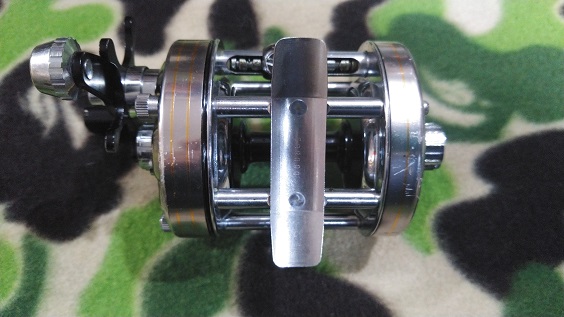 アブ社のスピニング型クローズドフェイスリール、505です。スピニングリールのような吊り下げ型です。構造上、ラインが緩く巻かれてもバックラッシュしにくいので、トップウォータープラグの釣りなどには最適かと思います。また、ハンドルを半回転ほど逆に戻すとラインが出ていく”シンクロドラグ”機構(アジャスタブル)も備えているので、魚とのスリリングなやり取りが楽しめます。本品は経年による僅かな小キズやヨゴレはありますが、年代から考えればとてもキレイなコンディションです。機関も良好です。 スウェーデン製。 ¥13,200 \12,100(税込) 送料は別途です。佐川急便(¥580~)、ヤマト運輸(¥900~) お支払いには銀行振り込み、ゆうちょ口座への振込みがございます。 お問合せ・ご注文はメール(curtiscreek99@gmail.com)またはお電話(027-289-2307)までお願いいたします。