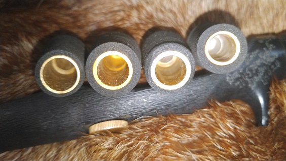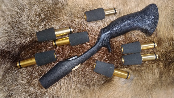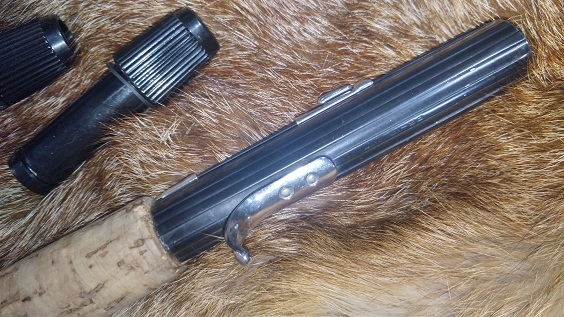 アメリカはフェザーウェイト社のラムロッドグリップです。1970年代頃の製品と思われます。あまり出てこないアイテムですね。当商品は使用頻度も低かったのようで大きなキズや破損は見当たりませんが、トリガーの周辺に英語で刻印されている箇所があります(画像参照)。それ以外はとてもキレイなコンディションです。内径10ミリx1個、10.3ミリx1個、11.5ミリx1個、12ミリx3個、12.6ミリx1個の合計7個の純正フェルールが付属します。 ¥27,500(税込)