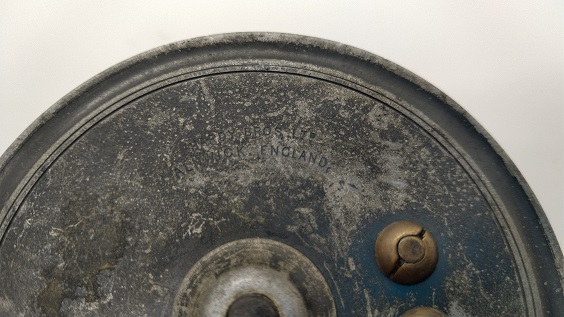 1900年代はじめ頃のオールコック社の小型フライリールです。現代のフライラインだと3番ラインくらいが適合するサイズでしょうか。リールの直径は約67mm。スプール内側の幅は約18mm。裏面の馬の刻印がカッコいいですね!