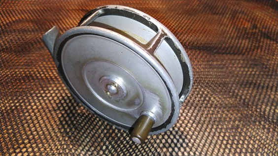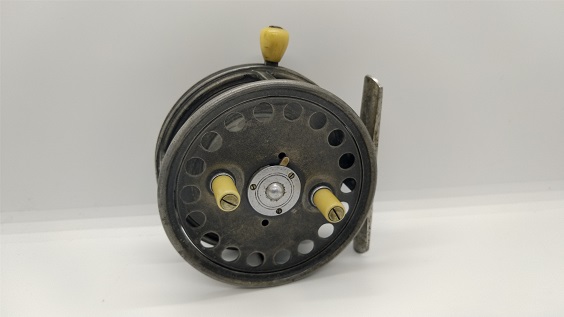 1939年製のリールです。ヤングのリールを彷彿させる名前と作りですが、ヤング社の刻印はありません。背面のon/offスイッチでクリックが解除されてフリースプールになり、となりのダイヤルでブレーキの制御をするシステムです。当時のイギリスはこういうリールでベイトキャスティングをしていたのが面白いですね。もちろんフライリールとしても機能します。リールの直径は約89mm。スプール内側の幅は約23mmです。経年や使用による小キズ・ヨゴレなどはありますが、年代から考えるととてもキレイな状態です。現状販売。 Made